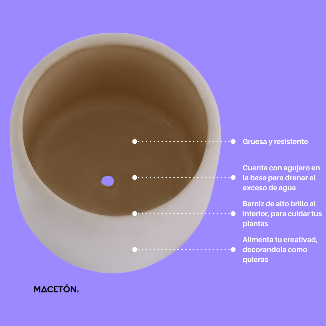 Fabricadas en cerámica de alta calidad, estas macetas cuentan con agujeros de drenaje que garantizan un riego adecuado, evitando el encharcamiento y promoviendo la salud de tus plantas. Su capacidad de 600 mL las hace aptas para una variedad de plantas, desde hierbas aromáticas hasta flores ornamentales, perfectas para quienes desean iniciar una huerta en casa.